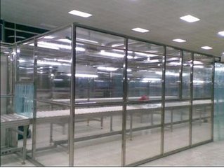 潔凈棚(潔凈棚|無塵棚)是一種簡單的潔凈棚,可以迅速提高地區(qū)潔凈度的設(shè)備。工業(yè)鋁材(或不銹鋼方通、鐵方通涂裝)作為框架,采用全布風(fēng)扇過濾單元FFU送風(fēng),周圍采用防靜電垂簾(或鋼化玻璃),內(nèi)部凈化水平達(dá)到100級(jí),潔凈棚低成本、方便快捷、靈活組裝,廣泛應(yīng)用于光電、電子生產(chǎn)線作業(yè)、實(shí)驗(yàn)室、組裝區(qū)域等局部高清潔度。