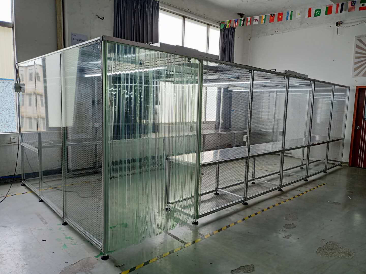 潔凈棚是一種投資少而凈化級別高,移動比較方便的簡易凈化裝置。將潔凈層流罩FFU放置在由專業(yè)凈化鋁型材組裝而成的框架上。頂部由盲板鋪蓋,密縫嚴密,四周用防靜電簾/防靜電有機玻璃圍縫使棚區(qū)內(nèi)潔凈度達到100-10000級。